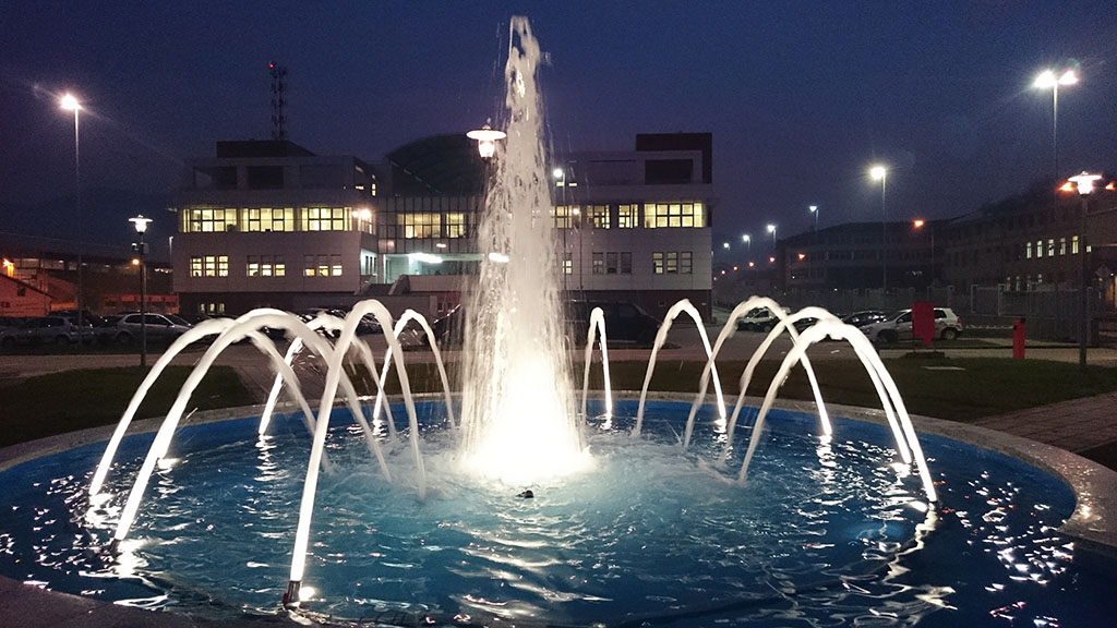 Fontana ispred glavnog objekta SIPA-e se nalazi u dvorištu ispred onjekta te se sastoji od 12 pjenušaca i 4 cascade mlaznice.