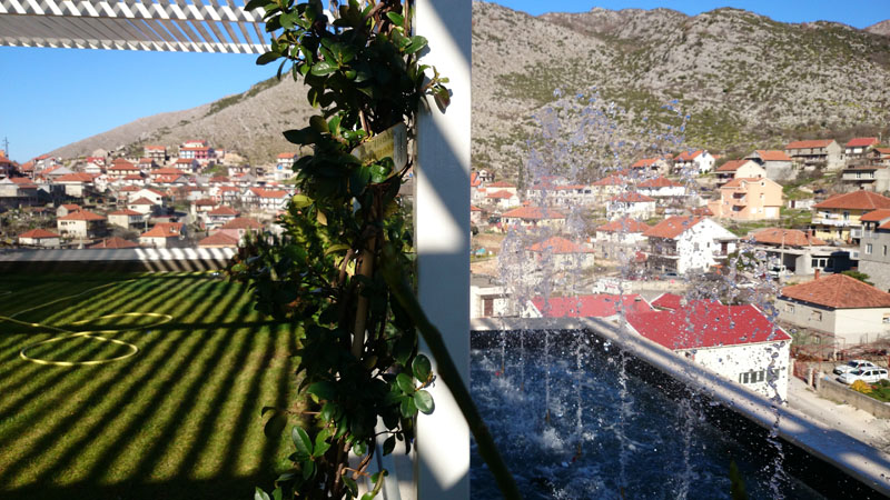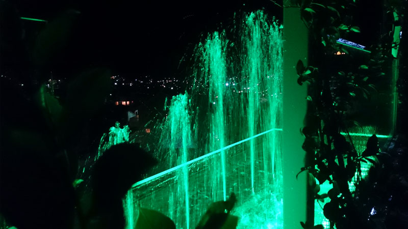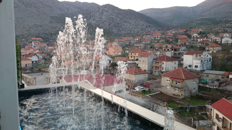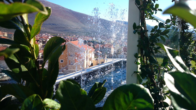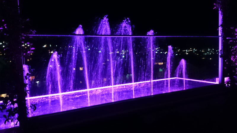 Fontana se nalazi uz sami rub terase te se kroz obojene mlazove vode pruža prekrasan pogled na grad Trebinje.